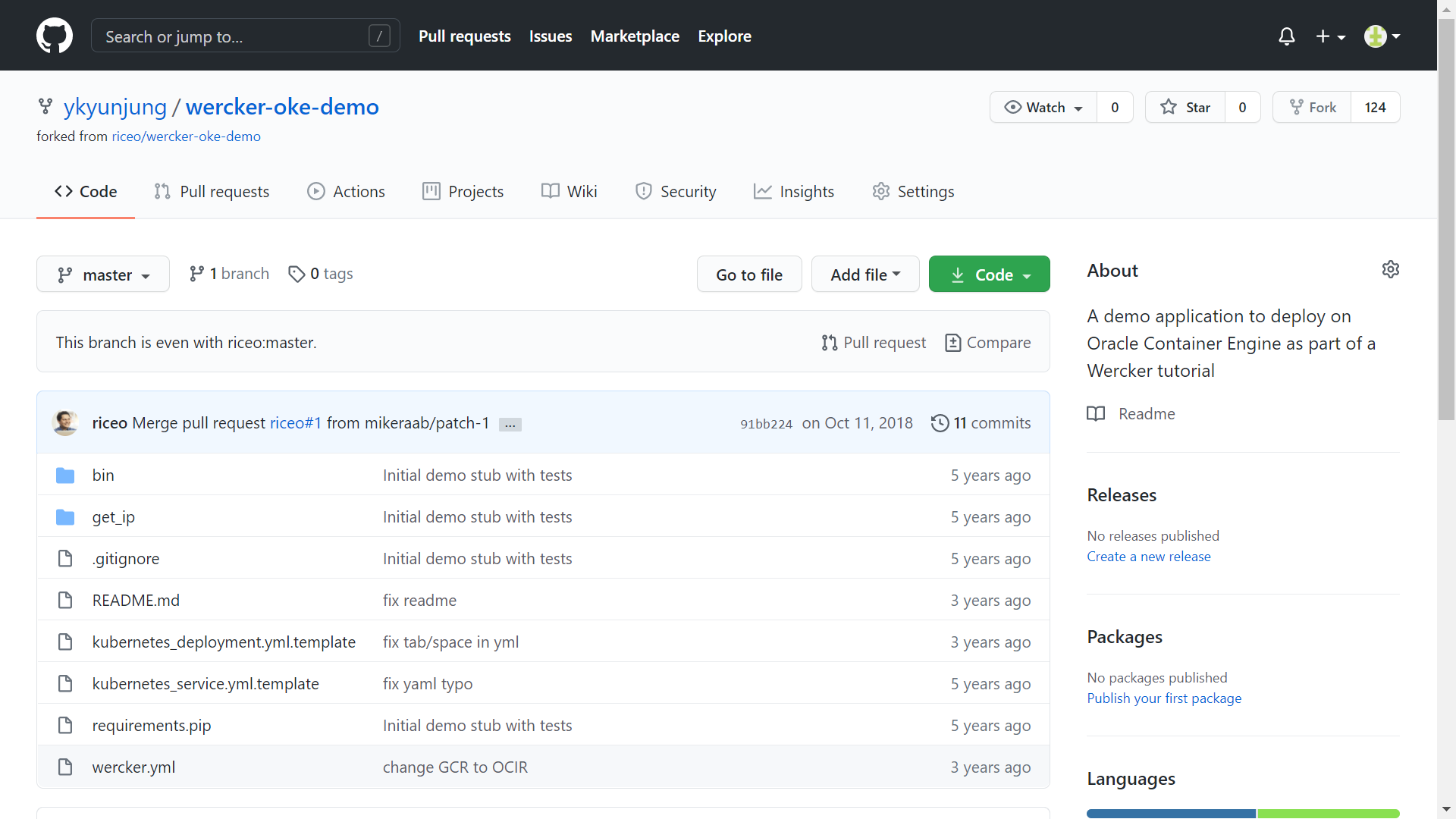 이번 테스트에서는 GitHub의 샘플 어플리케이션 소스를 가지고 Oracle CI/CD 솔루션인 Wercker(Oracle이 2017년 인수) 어플리케이션을 만들고, 이를 도커 이미지로 OCI 레지스트리에 업로드한 다음, OKE 클러스터에 컨테이너로 이미지를 배포해 본다.