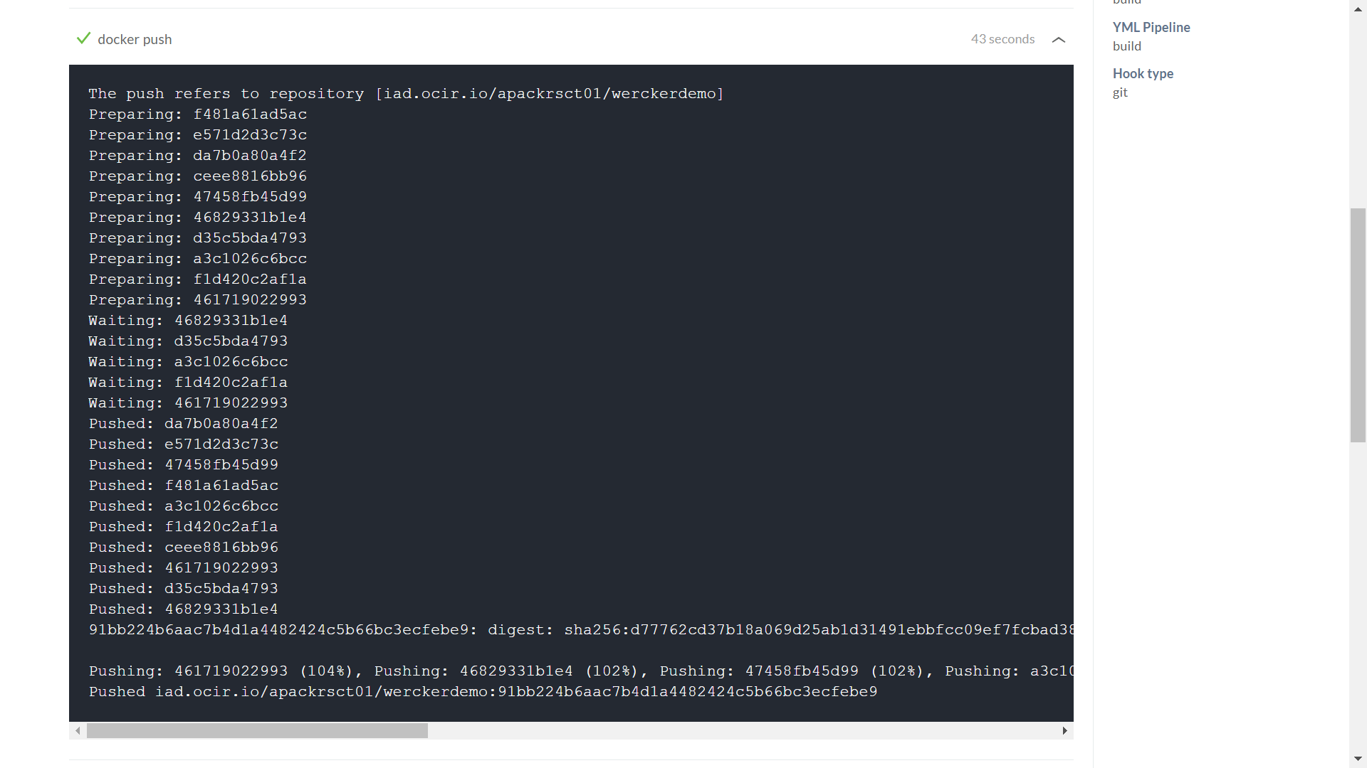 - DOCKER_REPO: iad.ocir.io/apackrsct01/werckerdemo