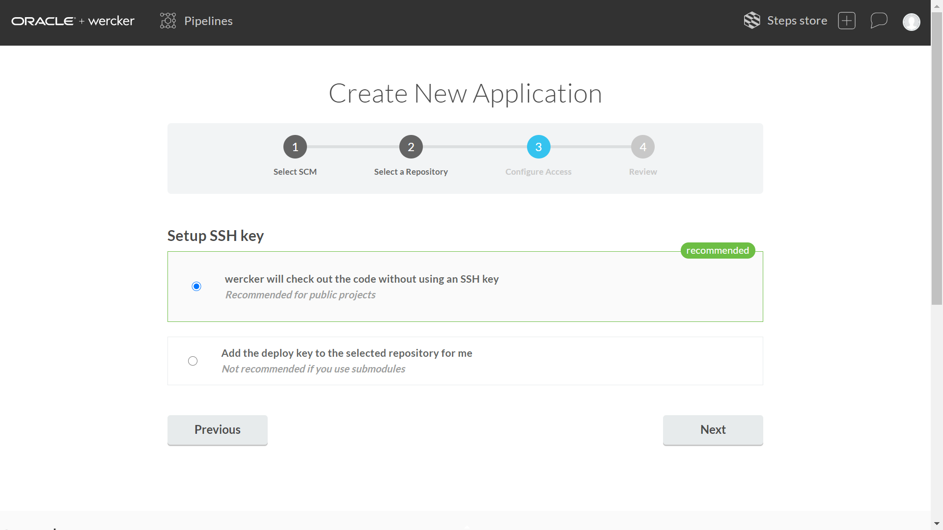Wercker 어플리케이션이 생성되었다.