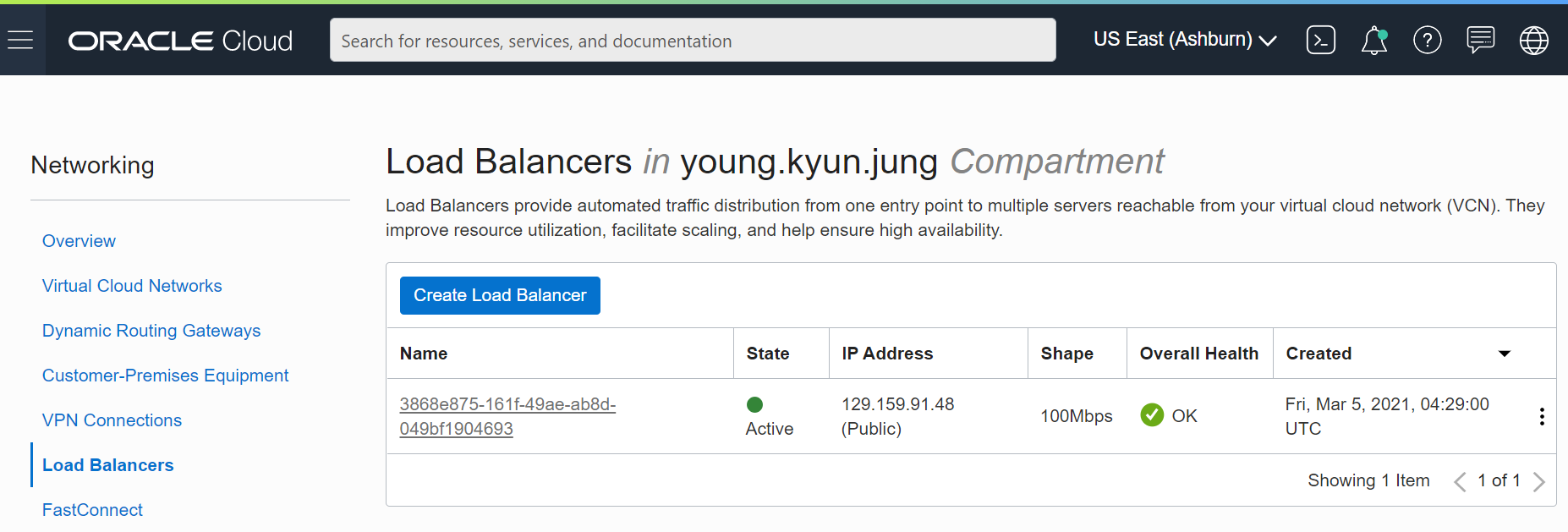 OCI 웹 콘솔에서도 로드밸런서가 생성되어 있는 것을 확인할 수 있다.